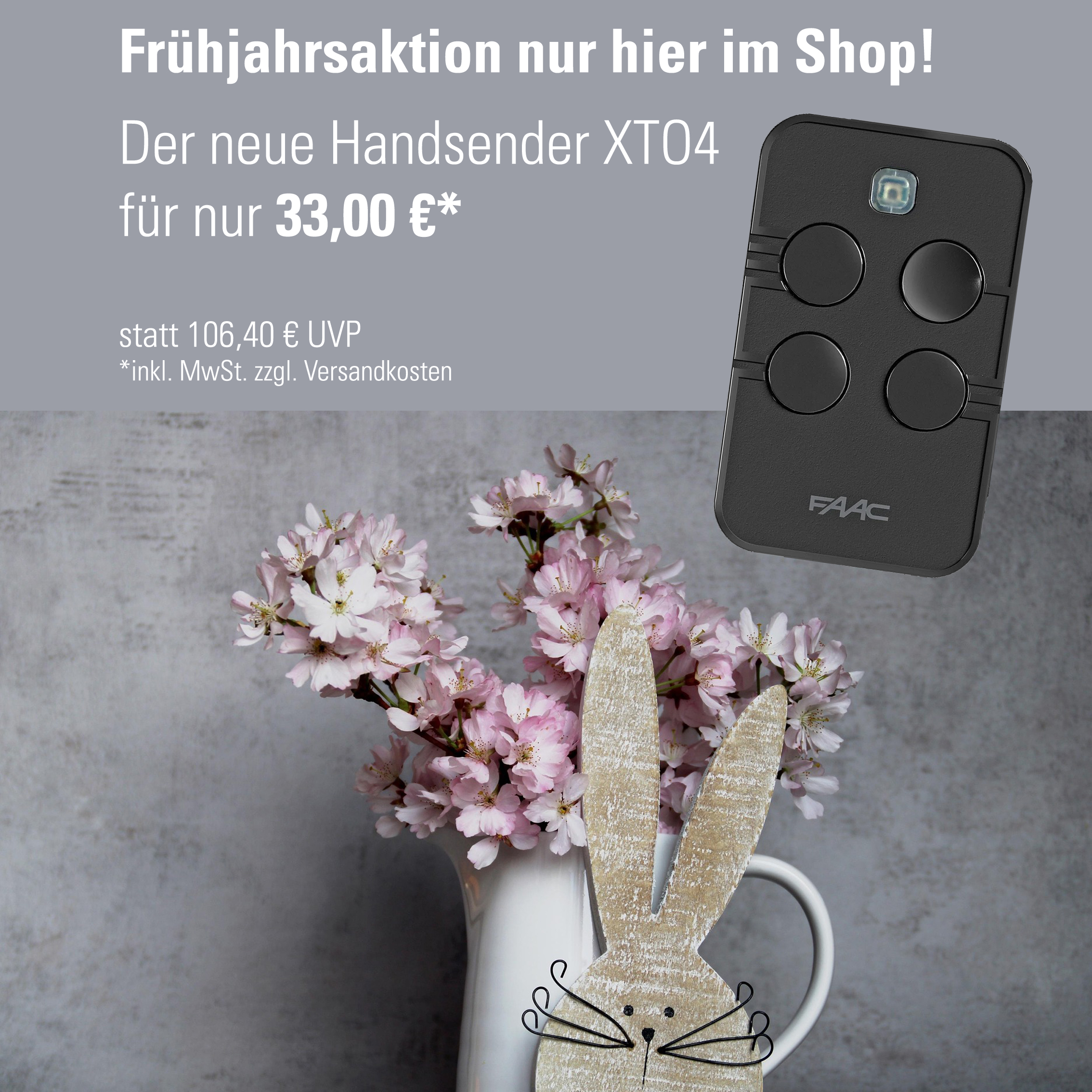 Frühjahrsaktion - Kaufen Sie den neuen 4-Kanal-Handsender XTO4 für nur 33,00 € inkl. MwSt. hier bei uns im Shop.